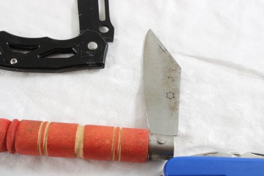 6 Folding Knives - As pictured. Please ask questions & read terms and conditions before bidding.