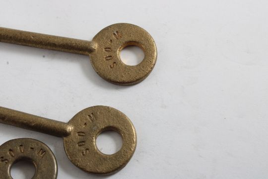 4 Brass SOO Line Railroad Keys - As pictured. Please ask questions & read terms and conditions before bidding.