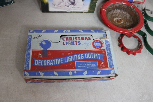 Christmas Tree Stand, Radio, Lights, Figurines - Radio is animated Singing Radio that Dances (you can leave on continuous play, or have it start up when someone passes by). It is missing the bottom battery door, but works well. North Star Tree Stand, Vintage RoundBall Christmas Tree Lights, Figurines. All as pictured. in original boxes. Please ask questions & read terms and conditions before bidding.