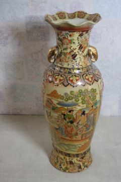 Japanese Satsuma Moriage Vase Elephant Handles - Fluted Moriage Japanese Satsuma Vase. Measures 24" Tall. As Pictured. Please ask questions & read terms and conditions before bidding.