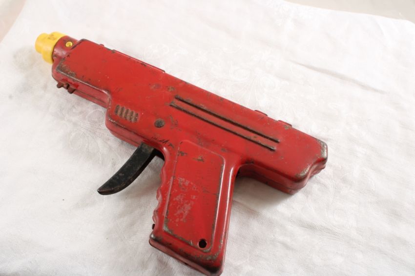 Wyandotte Thin Jet Water Pistol Pressed Steel - Measures 8.5" as pictured. Please ask questions & read terms and conditions before bidding.
