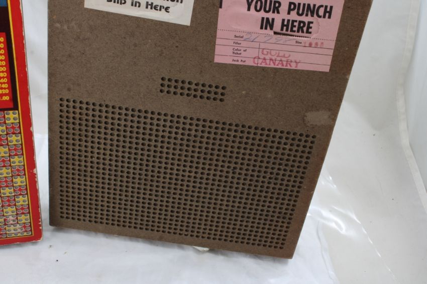 2 Antique 25 Cent Jackpot Charlie Tip Boards - One of the tip boards has a small tear in the paper covering. As pictured. Please ask questions & read terms and conditions before bidding.