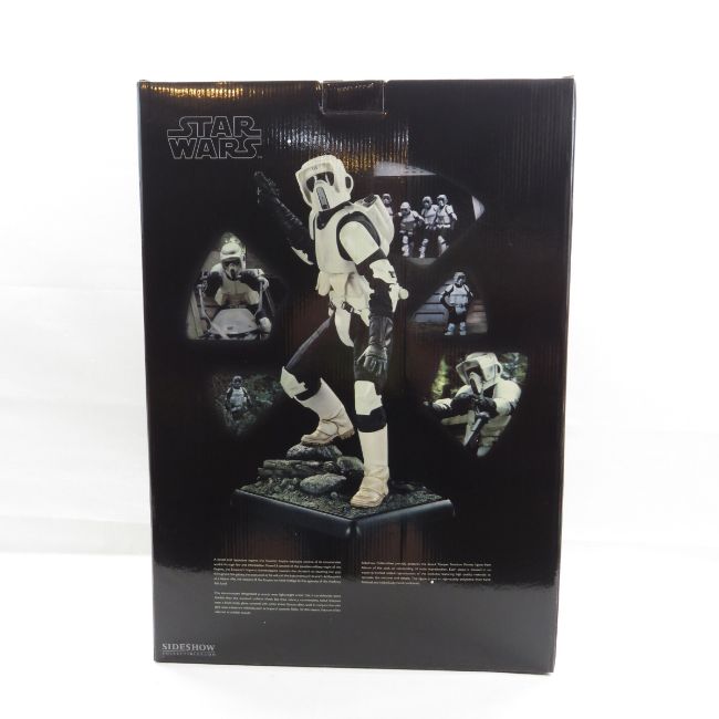 Scout Trooper Premium 1:4 Figure Sideshow - 128/300 Item #7222 Star Wars Scout Trooper Premium Format Figure 1/4 Scale Sideshow Collectibles Height: 17" Boxed Weight: 16lbs Box is split up the side on the seam, just needs glue. Single owner collection. Like new with box unless otherwise noted. Please ask questions and read terms & conditions before bidding.