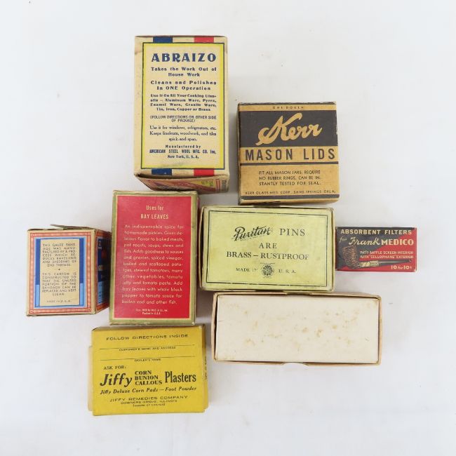 Assorted Vintage Advertising Boxes, Tintex & more - All Boxes are Empty - Ball, Kerr, buster Brown, Robertson Shoe, Quaker Lace Cloth, monarch Staples, Ann Page, Pinnacle, Spencer's All-Wheat & more Please ask questions & read terms & conditions before bidding. Live Auctioneers only display 20 photos per lot, whereas Proxibid and our A New Day bidding app will display all photos.