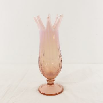 Westmoreland Lotus & Other Pink Opalescent Glass - 10" lotus bowl, 9" lotus vase, and unknown 6" ruffled bud vase, all have minimal normal wear marks, no chips or cracks Please ask questions & read terms & conditions before bidding. Live Auctioneers only display 20 photos per lot, whereas Proxibid and our A New Day bidding app will display all photos.