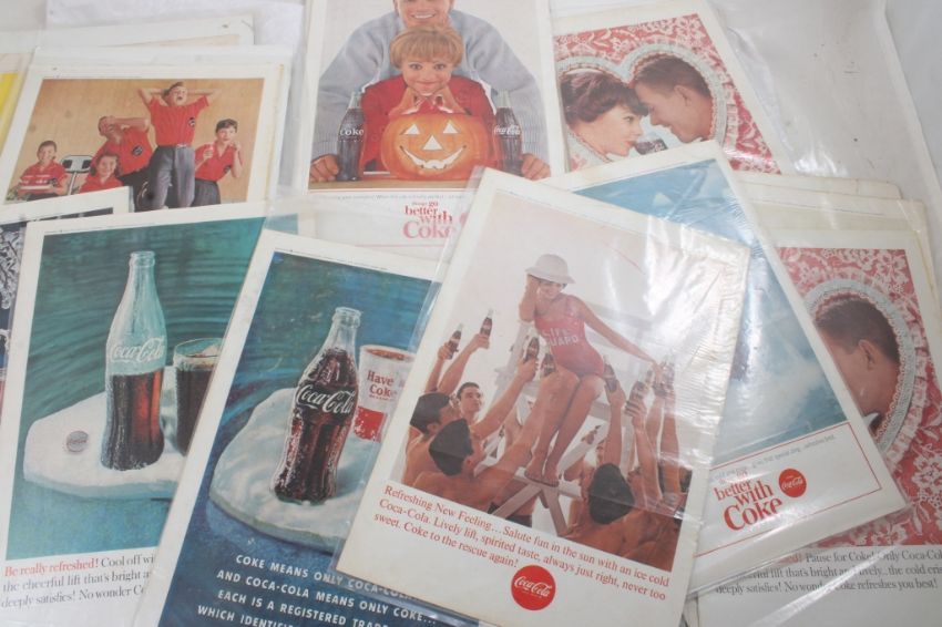 24 1960s Coca Cola Print Ads 7" x 10" Each - As pictured. Please read terms and conditions and askquestions before bidding. Live Auctioneers only shows 20 photos per lot. All photos can be viewed on Proxibid and our bidding app.