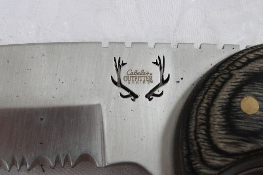 Handmade Cleaver, Cabela's Gut Hook Hunting Knife - Handmade Cleaver is made from Railroad Spike and is in sheath. Both as pictured. Please read terms and conditions and askquestions before bidding. Live Auctioneers only shows 20 photos per lot. All photos can be viewed on Proxibid and our bidding app.