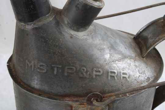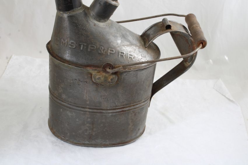 CMSTP & PRR Railroad Oil Can w/Bale Handle - As pictured. Please read terms and conditions and askquestions before bidding. Live Auctioneers only shows 20 photos per lot. All photos can be viewed on Proxibid and our bidding app.