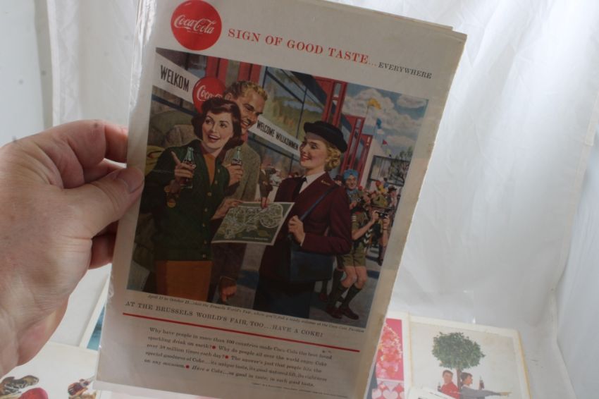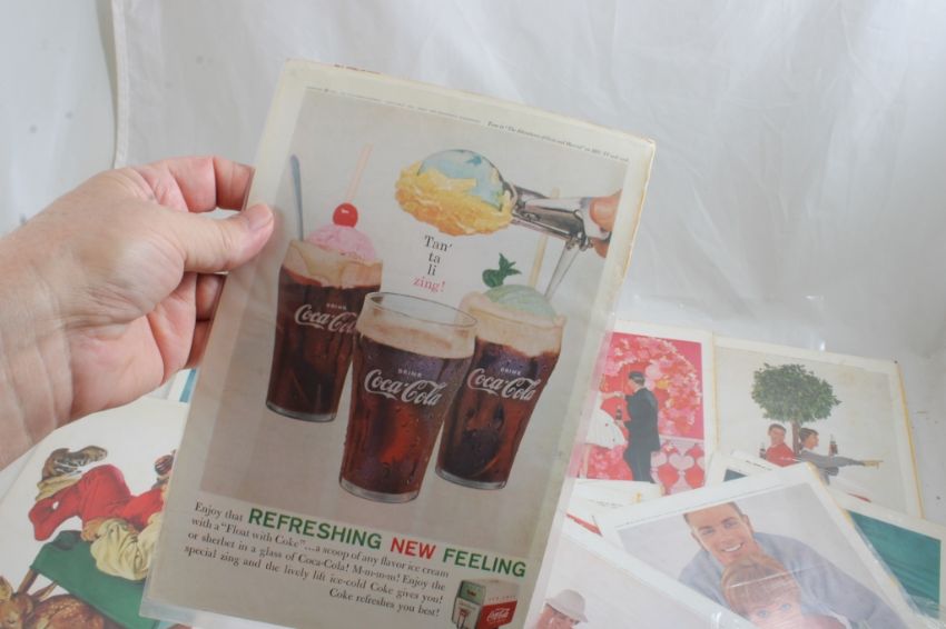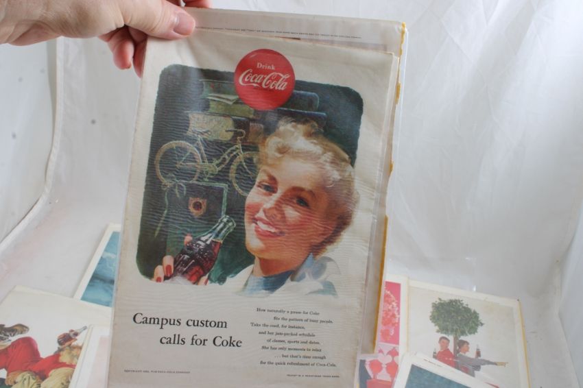 23 1950's & 60's Coca Cola Print Ads 7" x 10" Each - As pictured. Please read terms and conditions and askquestions before bidding. Live Auctioneers only shows 20 photos per lot. All photos can be viewed on Proxibid and our bidding app.