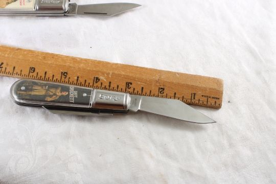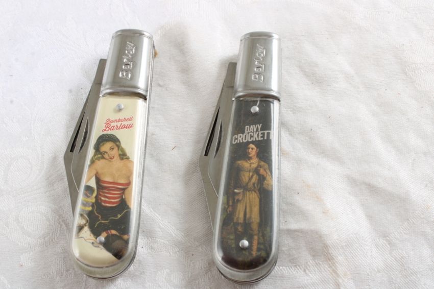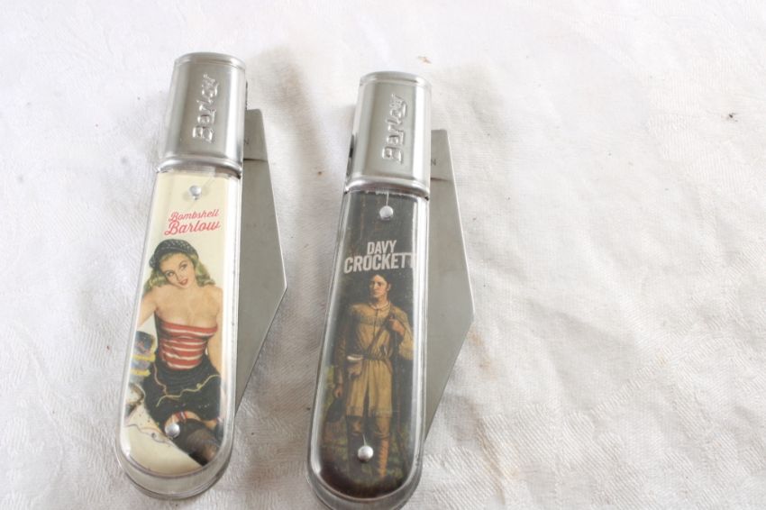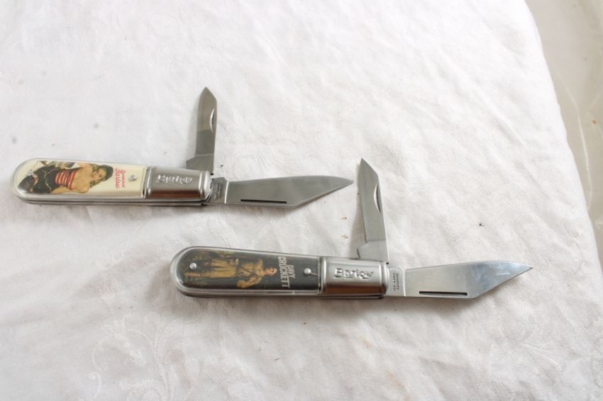 2 Barlow Folding Knives Bombshell, Davy Crockett - Both as pictured. Please read terms and conditions and askquestions before bidding. Live Auctioneers only shows 20 photos per lot. All photos can be viewed on Proxibid and our bidding app.
