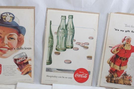 23 1950's Coca Cola Print Ads 7" x 10" Each - As pictured. Please read terms and conditions and askquestions before bidding. Live Auctioneers only shows 20 photos per lot. All photos can be viewed on Proxibid and our bidding app.