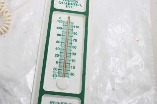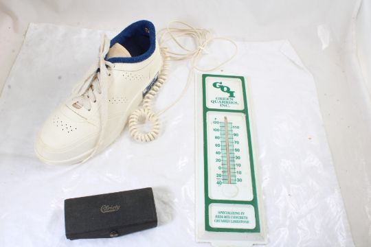 Sneaker Telephone, Green Quarries Adv. Thermometer - Sports Illustrated Sneaker Telephone (untested), Green Quarries, Inc. Metal Advertising Thermometer Works. Both as pictured. Please read terms and conditions and askquestions before bidding. Live Auctioneers only shows 20 photos per lot. All photos can be viewed on Proxibid and our bidding app.