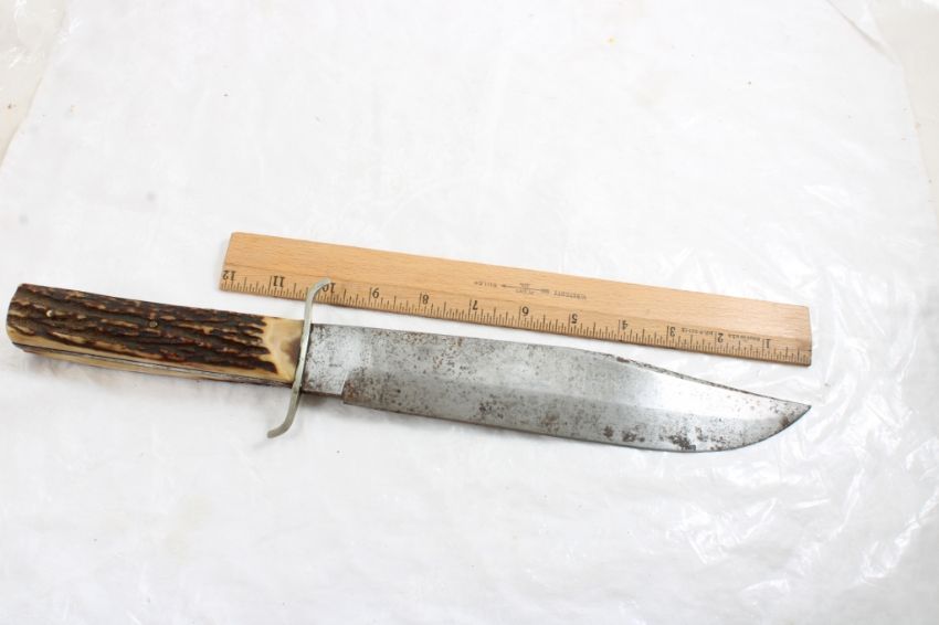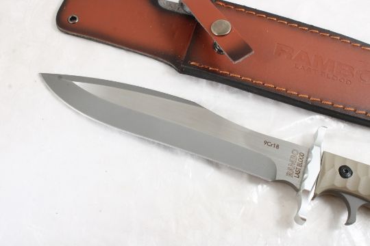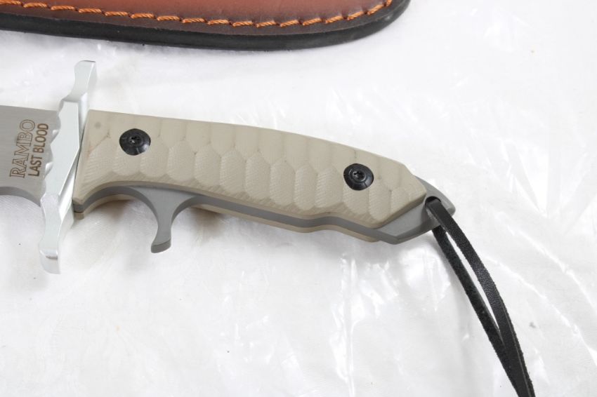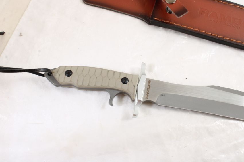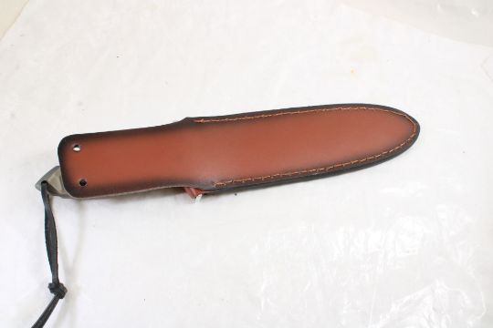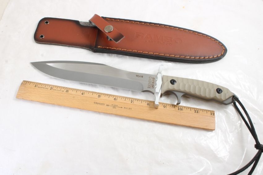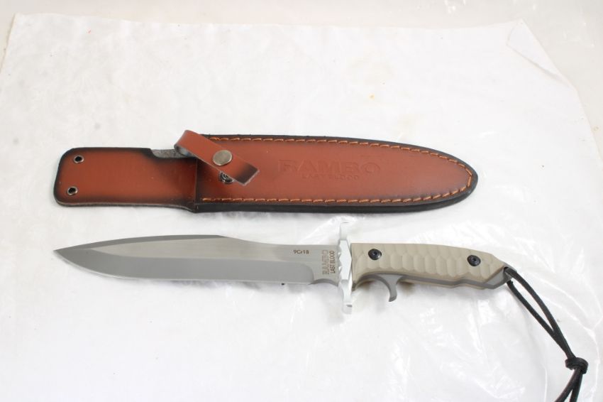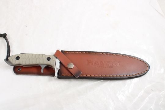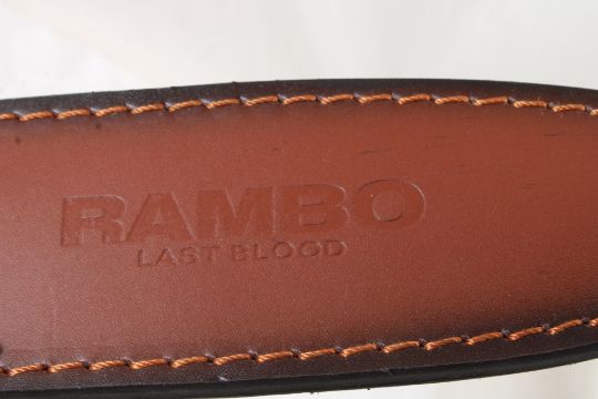 Rambo Last Blood Fixed Blade Knife Leather Sheath - As pictured. Please read terms and conditions and askquestions before bidding. Live Auctioneers only shows 20 photos per lot. All photos can be viewed on Proxibid and our bidding app.
