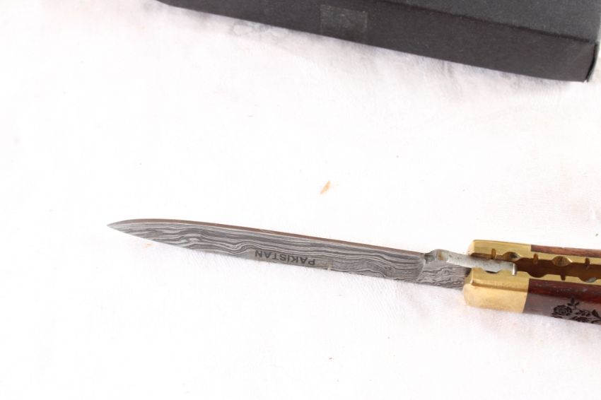 2 Folding Knives Imperial & Damascus Pakistan NIB - Both as pictured.. Please read terms and conditions and askquestions before bidding. Live Auctioneers only shows 20 photos per lot. All photos can be viewed on Proxibid and our bidding app.