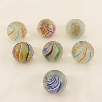 7 Handmade German Swirl Marbles 25/32" - Photos are part of the description. Live Auctioneers only shows 20 photos per lot, Proxibid and Bid.ANewDayAuctions.com show all if there are more than 20. Ask questions and read terms & conditions prior to bidding,