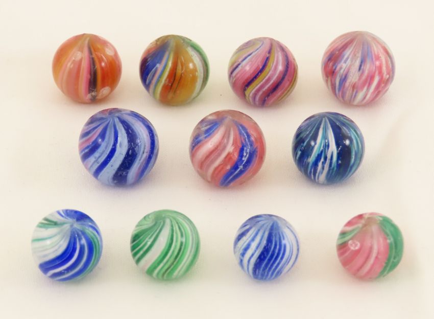 11 Vintage Onion Skin Marbles - Photos are part of the description. Live Auctioneers only shows 20 photos per lot, Proxibid and Bid.ANewDayAuctions.com show all if there are more than 20. Ask questions and read terms & conditions prior to bidding,