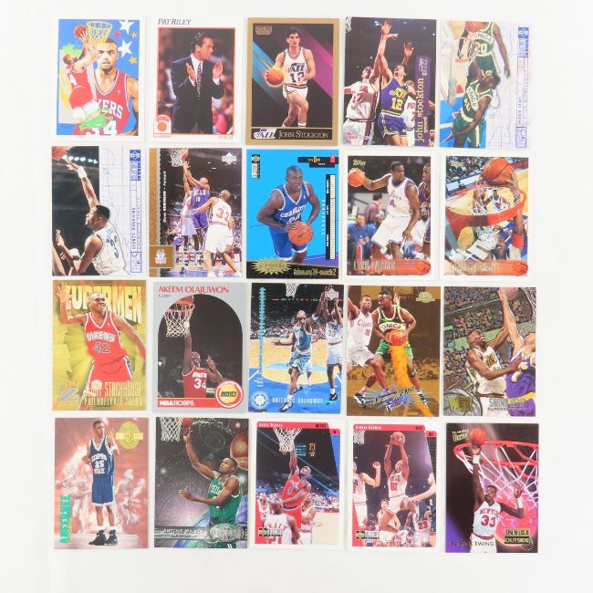 150+ Basketball trading cards - plus a new pack of sleeves Topps, Fleer, Upper Deck. Photos are part of the description. Live Auctioneers only shows 20 photos per lot, Proxibid and Bid.ANewDayAuctions.com show all if there are more than 20. Ask questions and read terms & conditions prior to bidding,