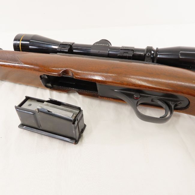 Winchester Model 100 SA .243 WIN Rifle with Scope - SN# 44587, semi-auto, 22" barrel, front ramp and rear adjustable wing sight, 1 4 round magazine, checkered wood pistol grip stock with sling loops and recoil pad. Weaver scope mount, Leupold VX-11 3-9 x 40mm scope. Mfg1962, C&R or FFL transfer required. Bidders please know local laws before bidding. Photos are part of description. Please ask questions and read terms & conditions before bidding.