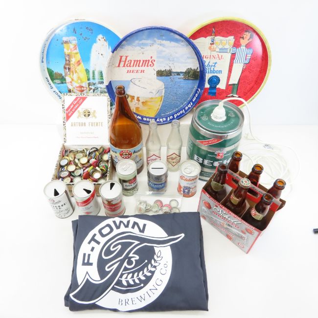 Beer Trays, Bottles, Bottle Caps & more - Grainbelt, Pabst & Hamm's Trays, F-Town Brewery Shirt, Heineken Light, Malting Bags & more Photos are part of description. Please ask questions and read terms & conditions before bidding.