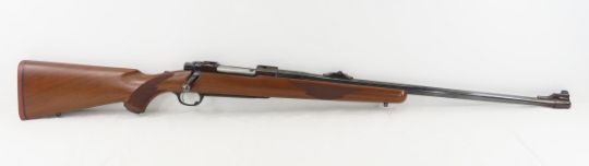Ruger M77.338 WIN MAG Bolt Action Rifle - SN# 772-15831, model 00756, 24" barrel, adjustable front blade sight and rear adjustable wing sight, checkered wood pistol grip stock with medallion and rubber recoil pad. Minimal surface marks on wood. Mfg 1989. FFL transfer required. Bidders please know local laws before bidding. Photos are part of description. Please ask questions and read terms & conditions before bidding.