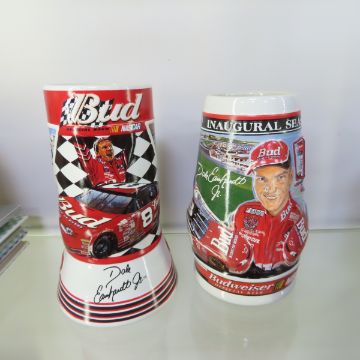 6 NASCAR & Car Racing Beer Steins & Books - Dale Earnhardt Jr 2000 inaugural season & 2001 Budweiser Steins, Danbury Mint Daytona 500 stein, 2 Jeff Gordon steins, 25th Anniv Winston Cup Champions steins. 1994 Daytona 500 program, 1995 Brickyard 400 1994 & 1995books and 19995 program Photos are part of description- Live Auctioneers only shows 20 photos per lot, if there are more you can view them on Proxibid or bidding app. Please ask questions and read terms & conditions before bidding.