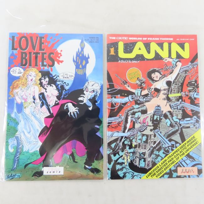 Eros Comix Forbidden Frankenstein #1 & #2 & More - Dracula's Daughter #1 Featuring Forbidden Frankenstein, Love Bites, Lann #1, Alien Sex #1 Photos are part of description- Live Auctioneers only shows 20 photos per lot, if there are more you can view them on Proxibid or bidding app. Please ask questions and read terms & conditions before bidding.