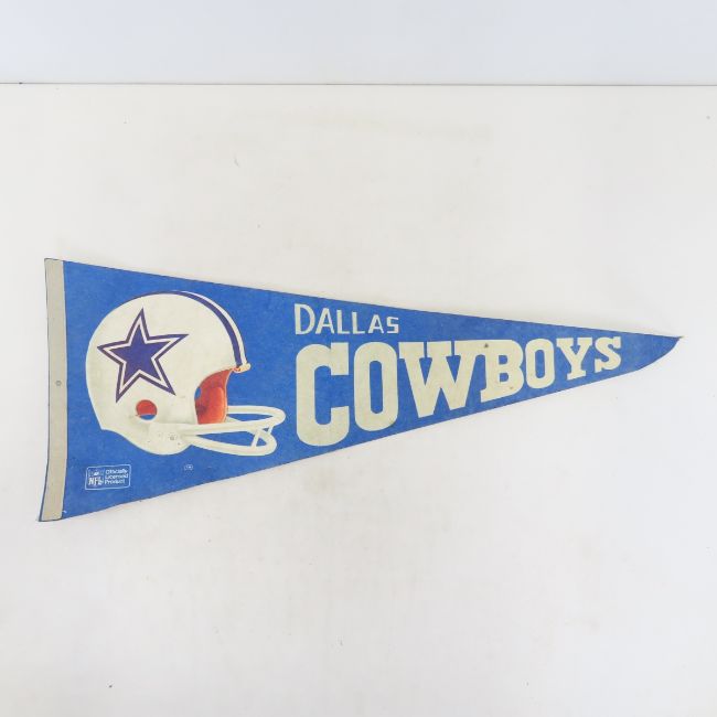 Vintage Baseball, Football Pennants & more - 2 Dallas Cowboys 1000 Piece Puzzles, Brett Favre Packers Bobble-Head, Wilson Football, 7 Pennants Photos are part of description- Live Auctioneers only shows 20 photos per lot, if there are more you can view them on Proxibid or bidding app. Please ask questions and read terms & conditions before bidding.
