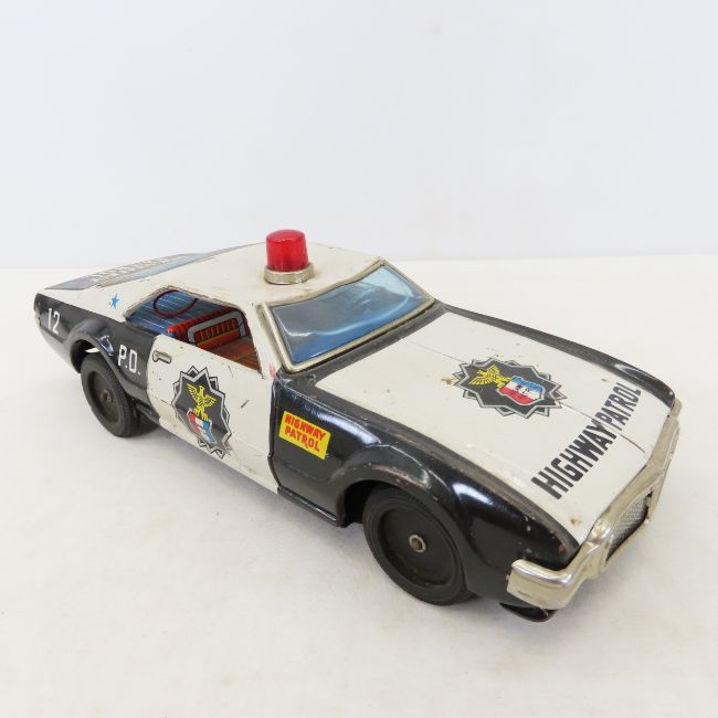 Vintage Tin Litho Cars, Trucks, Bank & more - Taiyo Highway Patrol Car, Jimson Bus Bank, K.O. Yoshia Cab, Hasbro & more Photos are part of description- Live Auctioneers only shows 20 photos per lot, if there are more you can view them on Proxibid or bidding app. Please ask questions and read terms & conditions before bidding.