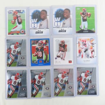 33 A.J. Green Football Rookie & Draft Cards - Photos are part of description- Live Auctioneers only shows 20 photos per lot, if there are more you can view them on Proxibid or bidding app. Please ask questions and read terms & conditions before bidding.