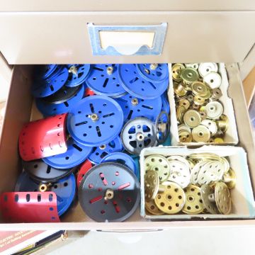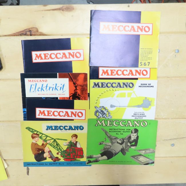 Assortment of Meccano Parts & Instruction Manuals - Motors, Pulleys, Faceplates, Tires, Bush Wheels, Plates, Strips, Electrical Sprockets, Girders, Boilers, Road Wheels, Hub Discs, Fly Wheels, Hub Discs -- Vintage and Newer Model Books/Manuals -- Meccano Magazines andother Electric model building ephemera -- *Due to weight will need to be shipped in at least 2 boxes Photos are part of description- Live Auctioneers only shows 20 photos per lot, if there are more you can view them on Proxibid or bidding app. Please ask questions and read terms & conditions before bidding.