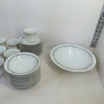 Style House Duchess Dishes Set for 12 & Servers - 12 plates, side plates, dessert bowls, cups & saucers. Sugar, creamer, serving bowel & platter, all in good condition Photos are part of description- Live Auctioneers only shows 20 photos per lot, if there are more you can view them on Proxibid or bidding app. Please ask questions and read terms & conditions before bidding.