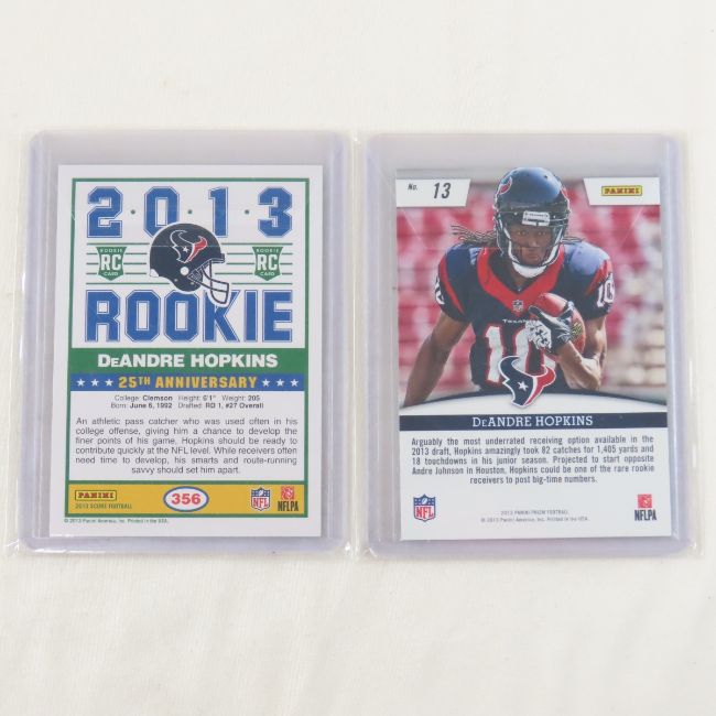 9 DeAndre Hopkins Rookie Football Cards - Photos are part of description- Live Auctioneers only shows 20 photos per lot, if there are more you can view them on Proxibid or bidding app. Please ask questions and read terms & conditions before bidding.