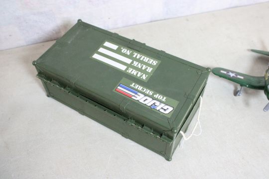 GI Joe Army General NRFB, Tonka Army Truck, with - with Radar Trailer, G I Joe Foot Locker Empty. WW2 Style Battery Operated Plane works.. Photos are part of description- Live Auctioneers only shows 20 photos per lot, if there are more you can view them on Proxibid or bidding app. Please ask questions and read terms & conditions before bidding.