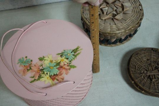 3 Wicker & Weaved Sewing Baskets - Largest wicker sewing basket measures 10.5" Diameter x 6.5" Tall.. Photos are part of description- Live Auctioneers only shows 20 photos per lot, if there are more you can view them on Proxibid or bidding app. Please ask questions and read terms & conditions before bidding.