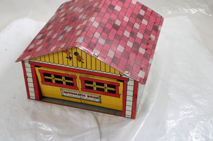 Marx Tin Litho Automatic Door Garage - Measures 9.5" x 9.5" x 6".. Photos are part of description- Live Auctioneers only shows 20 photos per lot, if there are more you can view them on Proxibid or bidding app. Please ask questions and read terms & conditions before bidding.