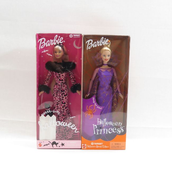 7 Mattel Halloween Themed Barbie Dolls - New in boxes. Some boxes will show wear. Please ask questions and read terms & conditions before bidding. Photos are part of description- Live Auctioneers only shows 20 photos per lot, if there are more you can view them on Proxibid or our bidding app.
