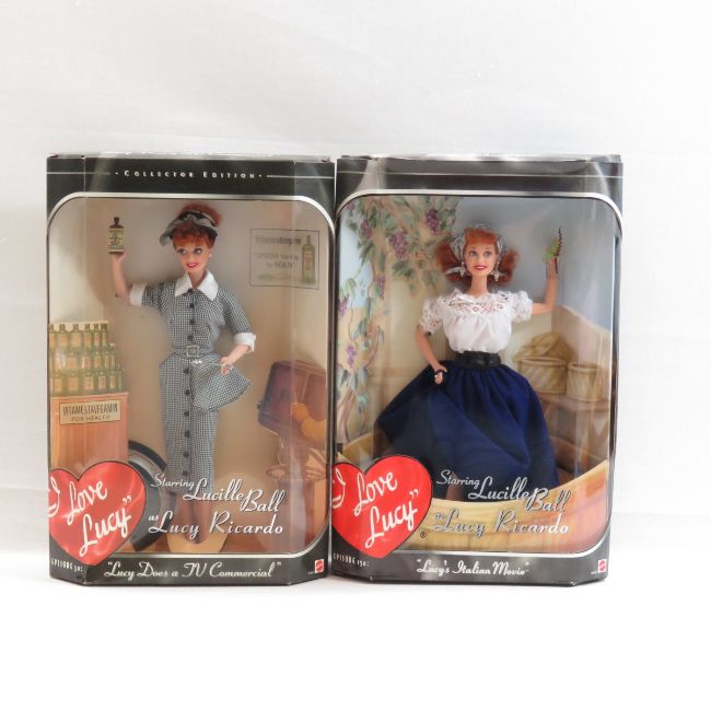 Collector Mattel I Love Lucy Barbie Dolls - New in boxes. Boxes will show light wear. Please ask questions and read terms & conditions before bidding. Photos are part of description- Live Auctioneers only shows 20 photos per lot, if there are more you can view them on Proxibid or our bidding app.