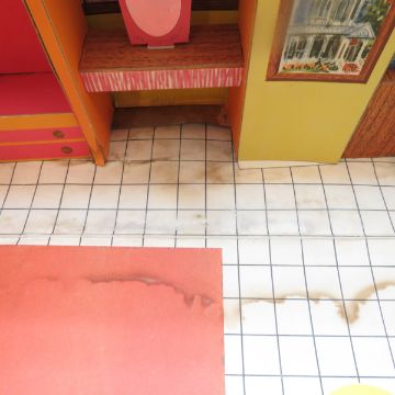 1962 Barbies Dream House w/Accessories - Heavy water damage and wear to box as shown. Accessories in overall decent condition. Some typical cardboard wear to accessories. Please ask questions and read terms & conditions before bidding. Photos are part of description- Live Auctioneers only shows 20 photos per lot, if there are more you can view them on Proxibid or our bidding app.