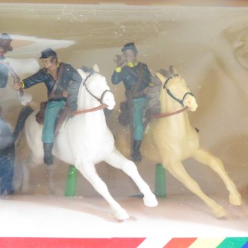 11 Britains Wild West Horse/Figure Box Sets - New in boxes. Boxes will show wear and discoloration. Vintage 1992. Please ask questions and read terms & conditions before bidding. Photos are part of description- Live Auctioneers only shows 20 photos per lot, if there are more you can view them on Proxibid or our bidding app.