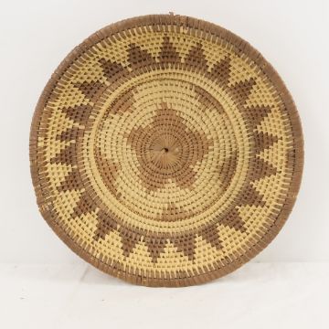 2 West African Hand Woven Wicker Baskets - Largest 12", Lot size: 13 x 13 x 5", 2 lbs Photos are part of lot description. Please ask questions and read terms & conditions before bidding.