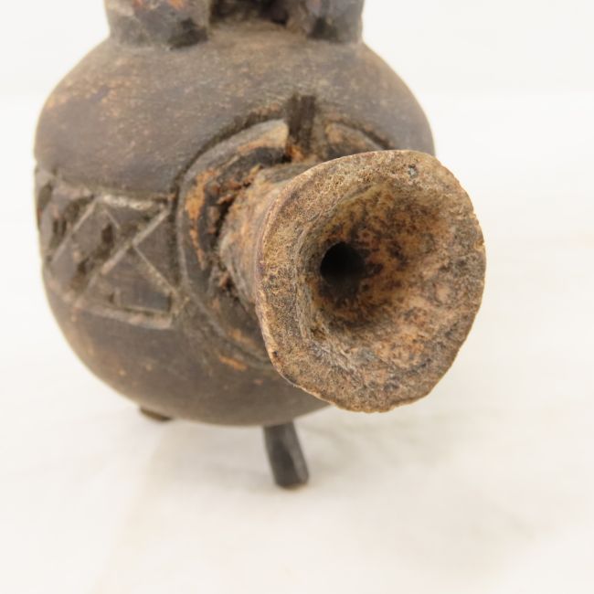 Hand Carved African Figural Tobacco Pipe - 9" tall, Lot size: 10 x 7 x 6", 1 lbs Photos are part of lot description. Please ask questions and read terms & conditions before bidding.