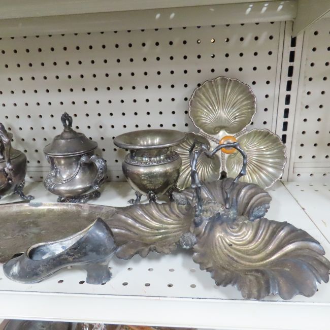 Vintage Silverplate Serving Pieces, Coffee, Butter - Largest piece 13", Lot size: 16 x 16 x 12", 22 lbs Photos are part of lot description. Please ask questions and read terms & conditions before bidding.
