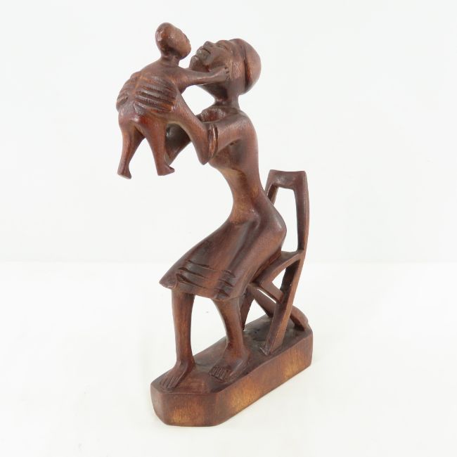 Hand Carved Wood African Mother & Child - 12" tall, Age & Region unknown, Bottom signed 'MIL', Lot size: 13 x 8 x 5", 2 lbs Photos are part of lot description. Please ask questions and read terms & conditions before bidding.