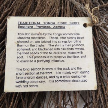 Traditional Zambian Mustana Root Tonga Skirt - Beaded Cowrie Shell Sash, Skirt length 10", Lot size: 14 x 10 x 9", 2 lbs Photos are part of lot description. Please ask questions and read terms & conditions before bidding.