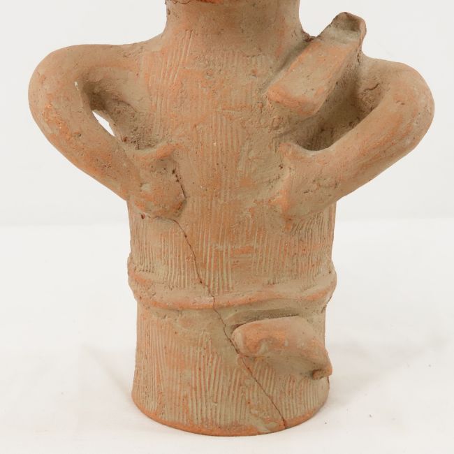 Handmade Haniwa, Japanese Clay Warrior - 11" tall, Broken/Repaired in several places at neck and base, Lot size: 12 x 8 x 6", 4 lbs Photos are part of lot description. Please ask questions and read terms & conditions before bidding.