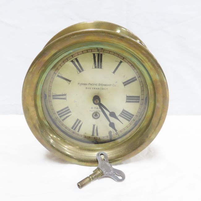 2 Vintage Clocks Parker, Mammoth & Panama Pacific - Tested: Panama Pacific Steamship Co. San Francisco wall mount clock, wound tight, we are not seeing where to insert battery, sold as non-working. Parker Mammoth alarm clock, alarm rings, Time key not catching/winding.Largest has 8" diameter. Lot size: 14 x 8 x 5", 5 lbs Photos are part of lot description. Please ask questions and read terms & conditions before bidding.