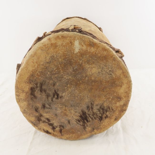 Handcrafted African Ngoma Dancing Drum - Cowhide stretched over Hollow Tree Trunk, 17" tall, 9" skin, Lot size: 17 x 10 x 10", 6 lbs Photos are part of lot description. Please ask questions and read terms & conditions before bidding.