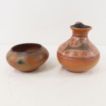 Venezuelan & Chilean Clay Pots - Tallest Pot is 7", Markings: 1 marked QC32 MFZ Venezuela 1997, 1 marked 119 Venezuela 1997, 1 signed Ivan, 1 unmarked, Smallest Unmarked Bowl has 2 fracture lines and a small repaired hole in the side, Lot size:18 x 18 x 13", 7 lbs Photos are part of lot description. Please ask questions and read terms & conditions before bidding.