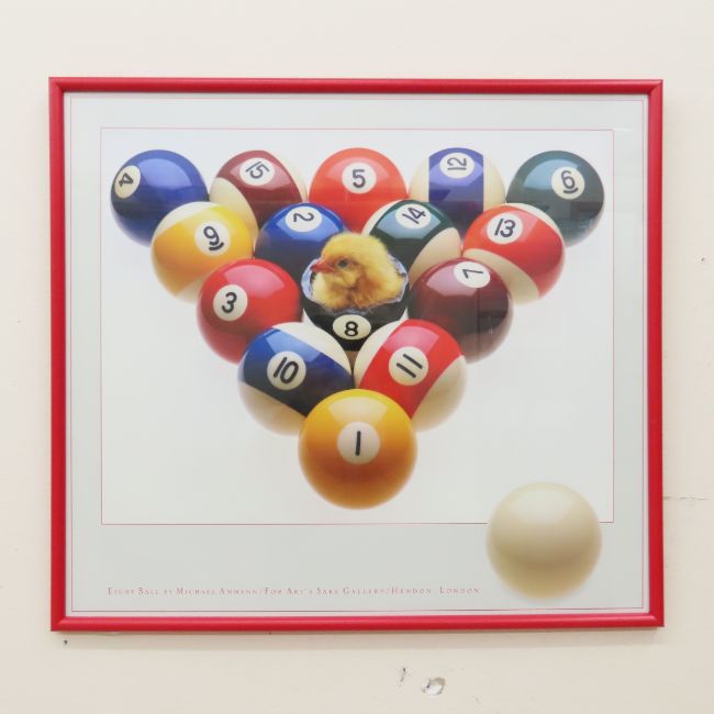 "Eight Ball" by Michael Ammann Framed Print - for Art's Sake Gallery/ Hendon, London, 28.25 x 25.25 x 1", 7.5 lbs Photos are part of lot description. Please ask questions and read terms & conditions before bidding.