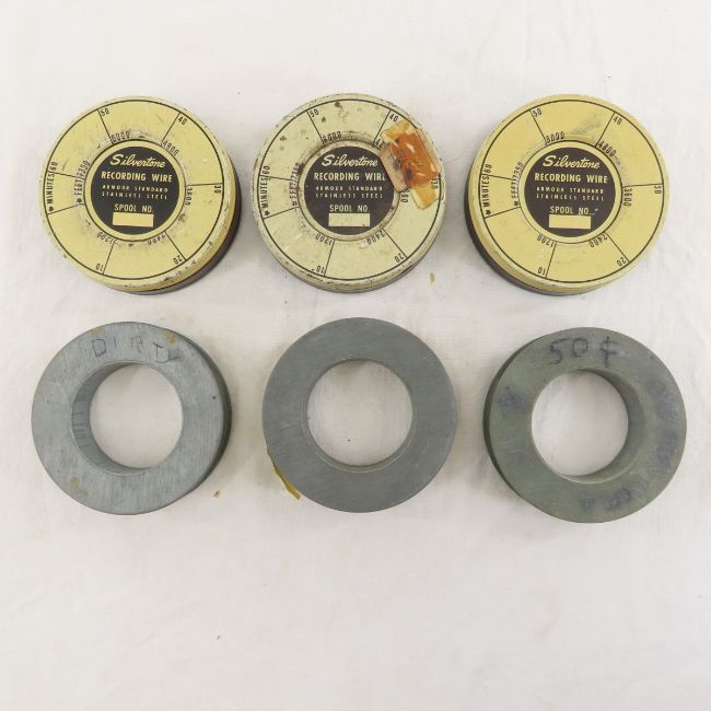 Silvertone Recording Wire & Radio Tubes - 5 Spools of recording wire, 2 Sylvania and 1 RCA tube. Lot size: 7 x 7 x 3", 4 lbsPhotos are part of description. Please ask questions and read terms & conditions before bidding.